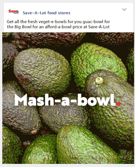 Even though we can’t say it, everyone knows that there’s that one day in February that’s all about “Bowls”. And when it’s time for the Big Game, Save-a-lot’s afford-a-bowl prices let you stock up on even more super bowls of chips, chili, dip and yes – even vegeta-bowls.